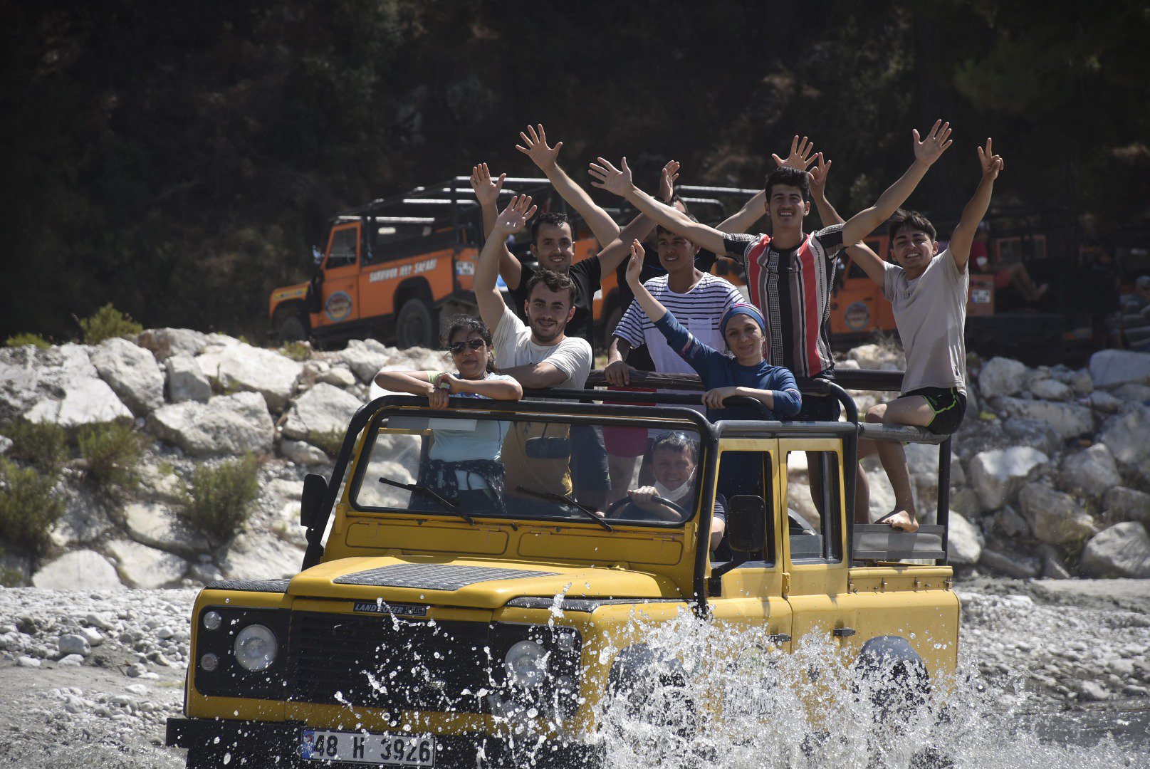A jeep safari is the experience of a life time. While you are here, we invite you to take a day from the coast and join us our 4-wheel drive Landrover jeeps to see some of the most beautiful inland sights of Turkey. Evergreen is a licenced jeep safari company that has been operating since 1994. We have a %100 safety record. In the morning we first take you to a small town so you can enjoy the great scenery of Valley Xanthos. Your guide will give you some info. about the area. Secondly, we will drive uphill to the park of fresh springs called Yakapark to relax and eat lunch. You will probably taste the freshest rainbow trout for your lunch. After lunch will drive downhill to Saklikent Gorge. Longest and largest in Turkey, about 18 km long. Saklikent has wooden bridges to walk into. Before we drive along the river to experience the natural mud bath you have chance to do river tubing. After mud experience, we drive in beautiful countryside back to the resort.