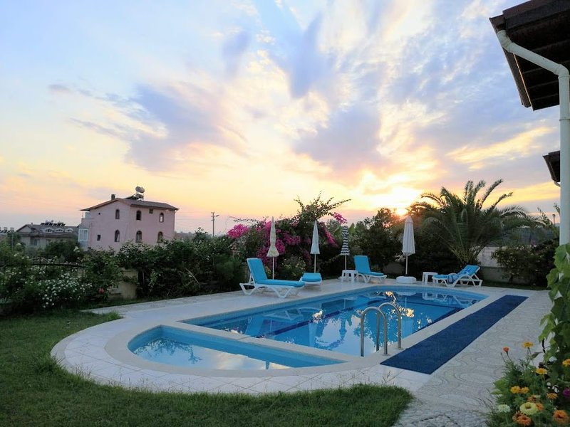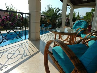 Villa Ruya is a spacious villa situated between the Mediterranean and the Toros mountains. It has four floors and a fantastic swimming pool with separate children's pool. The large terrace is great for relaxing and al fresco dining, overlooking the pool and offering superb sea views. All bedrooms have access to a balcony with fantastic views either of the Mediterranean or the mountains. The villa has marble floors throughout and air conditioning in every bedroom. The large ground floor is an open-plan kitchen/lounge leading to a wide terrace running the full length of the villa. On the terrace there is a separate dining area with barbecue and a relaxing sitting area. There is a constant slight sea breeze which is very welcome on the hot summer days. There is a downstairs toilet/utility.